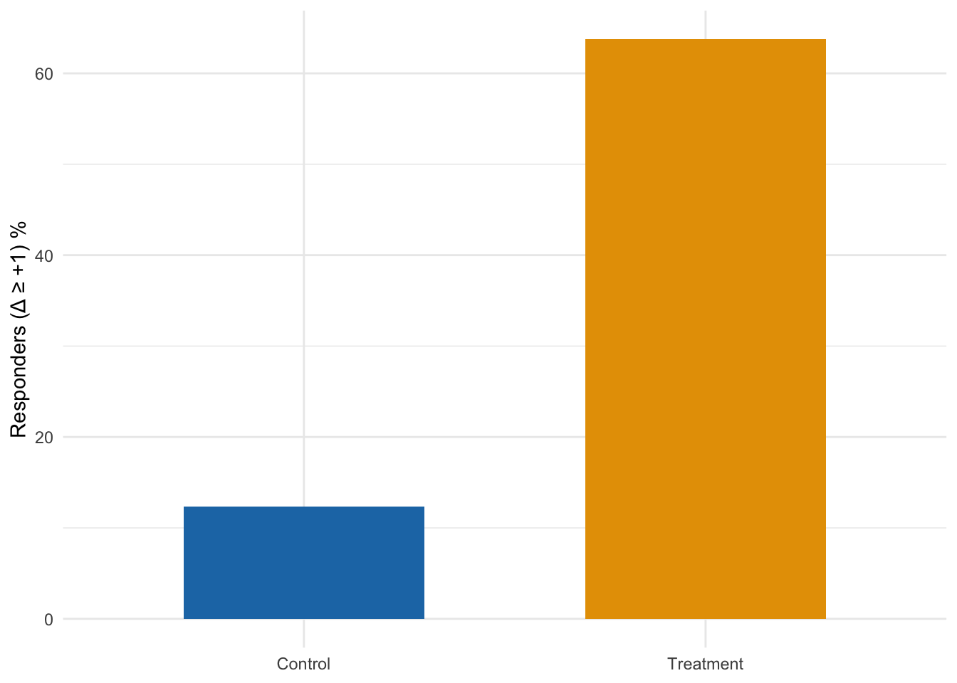 Responder rates (Δ ≥ +1) by arm